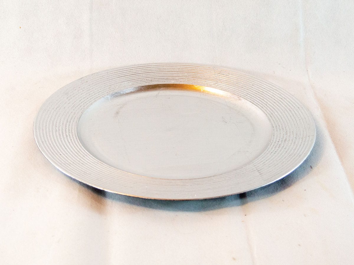Add a unique look to your table presentation using these silver circle charger plates. These charger plates are 13″ wide and are used as a decoration piece to set your dishware on. Please note these are not designed for direct food contact.
